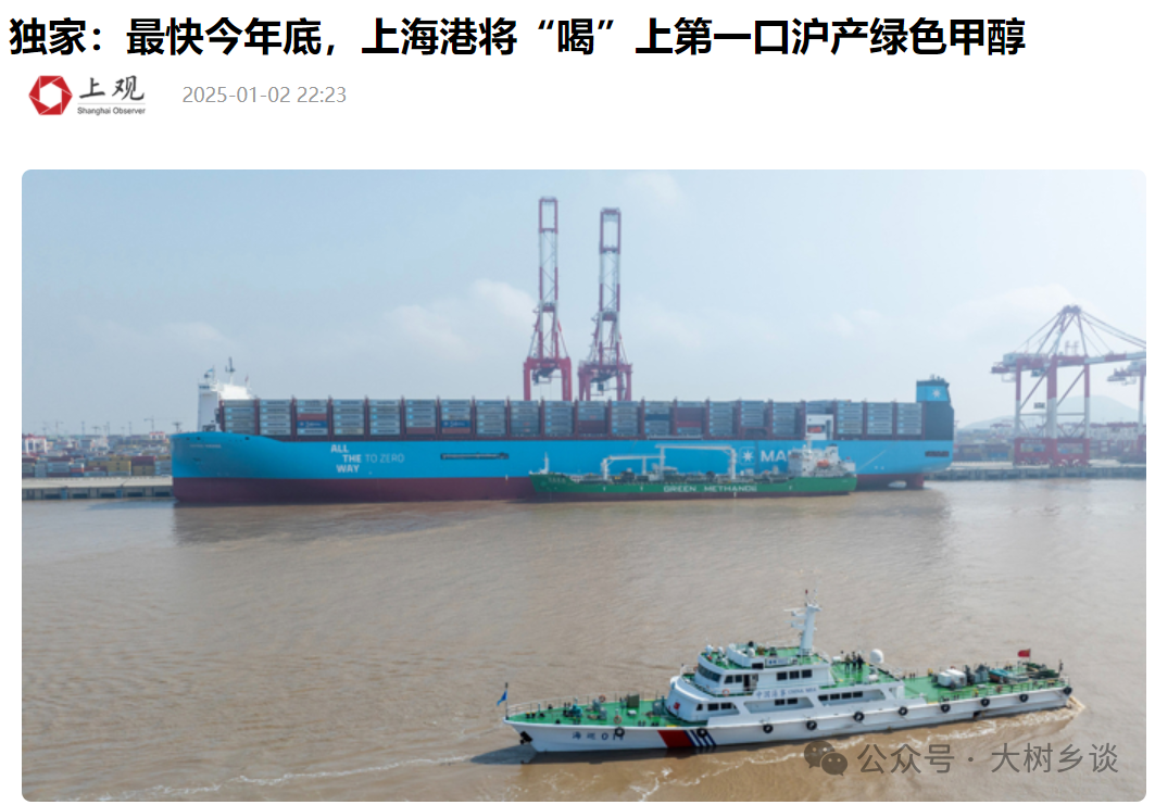 甚至2025年1月,上海还开始建造全球第一个10万吨级生物质绿色甲醇项目,用上海城市的湿垃圾、畜禽粪污等生产甲醇。