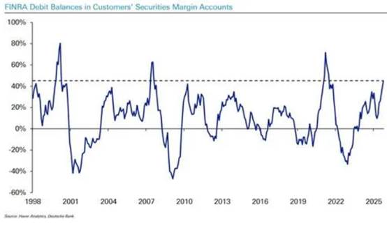 融资融券余额的激增通常是牛市晚期的信号。目前的杠杆积累速度已可与互联网泡沫破裂前夕和后疫情时代的狂热期前相提并论。