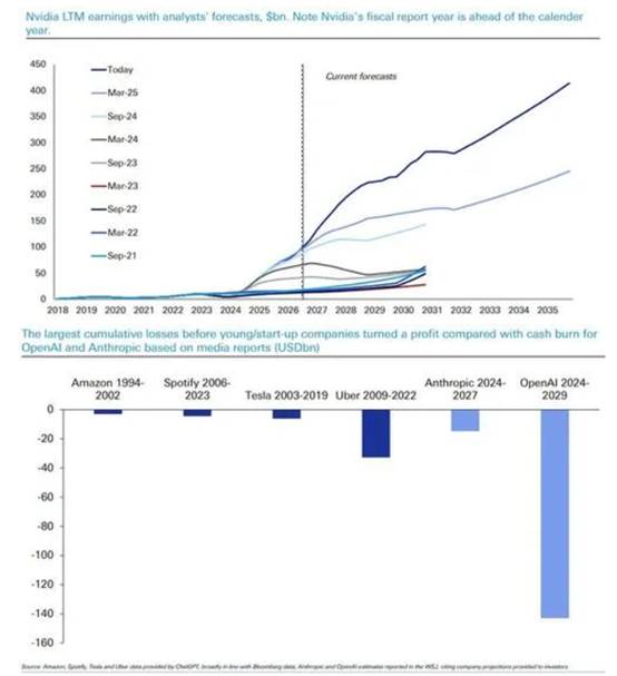 如果英伟达等领头羊的未来盈利预测开始持平,或者市场对亏损企业的融资意愿突然枯竭,整个AI交易逻辑和全球市场的乐观情绪将受到严峻挑战。