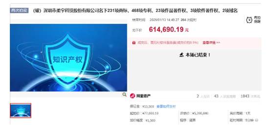 2026年1月,一则司法拍卖公告打破了科技行业的沉寂。曾经估值60亿美元(约430亿元人民币)的科创独角兽柔宇科技,其核心无形资产被打包拍卖——231项商标、468项专利、23项作品著作权、3项软件著作权及2项域名,最终以614690.19元成交。折算下来,平均每项知识产权价值不足千元,甚至不及一部中端手机的售价。