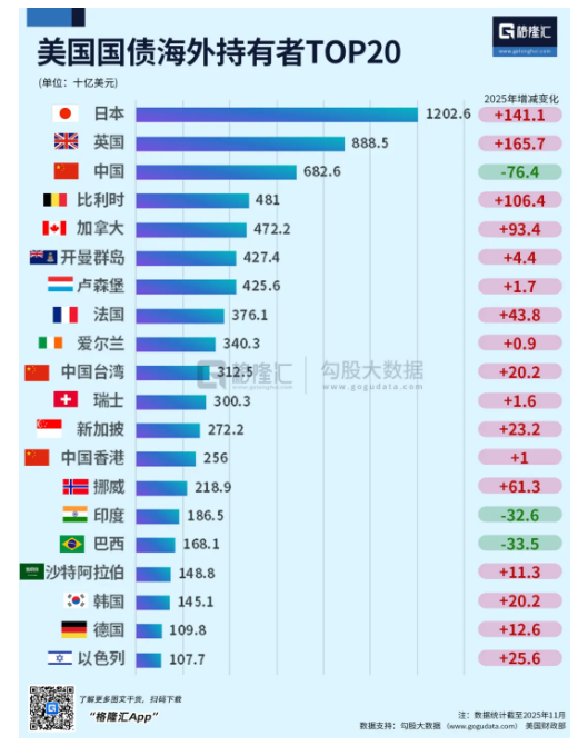 我们梳理了一下2025年黄金和美债的增减持情况,增持黄金的是害怕被制裁、害怕美元储备资产被武器化的国家,比如中国、印度、土耳其这些新兴经济体。增持美债的是日本、英国、西班牙这些发达经济体。