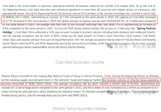 复星旅文也不能简单说烂。2024年Club Med的业务量按固定汇率计算达到161.47亿元,同比增长7%,全球运营68家度假村。亚特兰蒂斯三亚的运营业务量约15.45亿元,平均入住率创下83.8%的纪录。