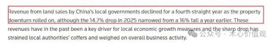 土地出让收入连续第四年下滑,2025年同比再降14.7%。