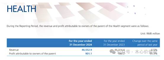 Health板块2024年收入465.5亿元,同比增长0.5%,归母利润9.01亿元,同比增长55.3%,年报明确写明,主要受益于Luz Saúde等业务收入增长,以及核心医药资产利润改善。