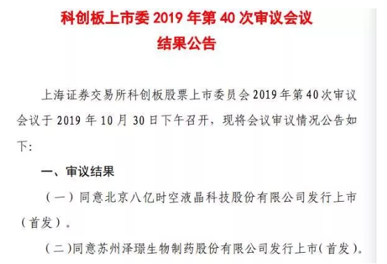 10月30日下午,科创板上市委2019年第40次审议会议结果公告显示,苏州泽璟生物制药股份有限公司首发上会获通过,计划融资23.84亿元。