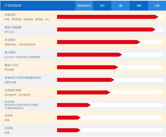 泽璟制药公司拥有精准小分子药物(氘代技术)和复杂重组蛋白新药两个研发及产业化平台,共开展11个主要创新药物的29项在研项目。此外,泽璟制药的研发管线包括两款肿瘤免疫双特异性抗体项目(ZG005、ZG006),由泽璟制药花费2000万美元(含ZG005、ZG006的四个大分子)和大中华区6%销售提成的代价从其控股51%的美国子公司璟尚生物授权获得。