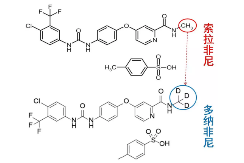 泽璟制药主要项目为拜耳索拉非尼的氘代产品多纳非尼,将索拉非尼末端甲基上三个氢原子改成氘原子,在绕过化合物专利的同时相比索拉非尼具有更佳的药物代谢和药代动力学特性,多纳非尼在体内代谢更稳定。目前全球仅一个获批的氘代药物,即由梯瓦(Teva)开发的氘代丁苯那嗪(商品名:Austedo,2017年4月FDA批准)。其研发管线中杰克替尼和奥卡替尼都采用类似的原理由现有药物氘代而来。