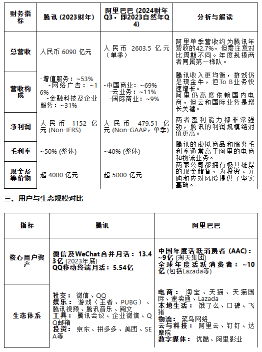 本分析将从核心业务、财务数据、用户规模、战略布局和资本市场表现等多个维度进行对比。
