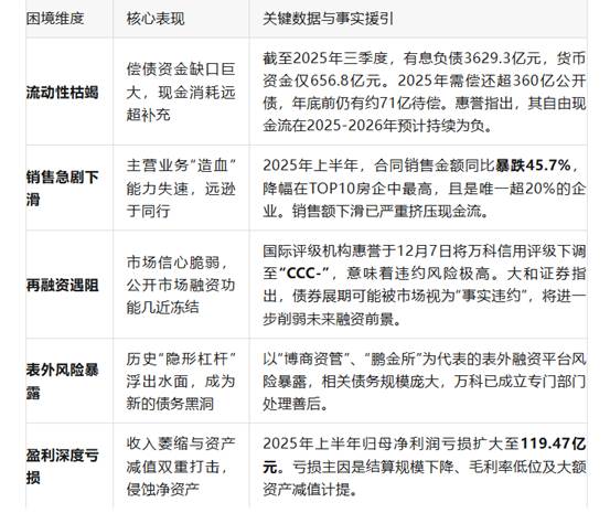当下,万科的困境是多维度、深层次的,其严峻性通过一系列关键事实与数据清晰呈现: