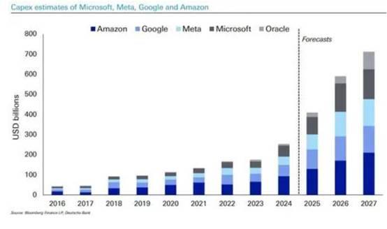 AI驱动美国经济重返高增长:AI资本支出热潮可能推动生产率提升,使美国经济年化增速重回4%以上,重现1990年代末的繁荣。