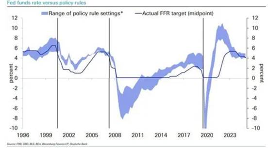 尽管市场预期降息,但德意志银行警告,如果2026年通胀持续高于目标,且根据政策规则利率处于低位,美联储可能不仅停止降息,甚至被迫转向加息。