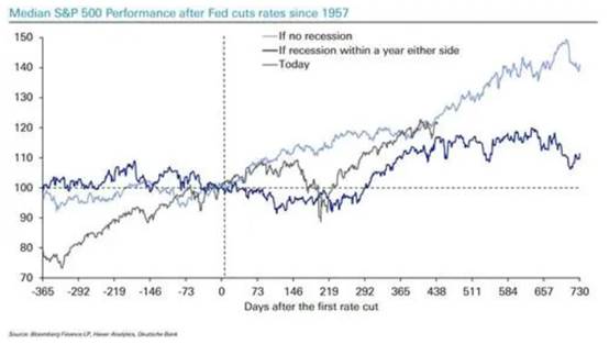 德意志银行分析认为,如果美联储在没有经济衰退的情况下通过降息实现软着陆,历史中位数据显示,在降息周期开启两年后,股市涨幅通常在50%左右,当前市场走势正符合这一规律。