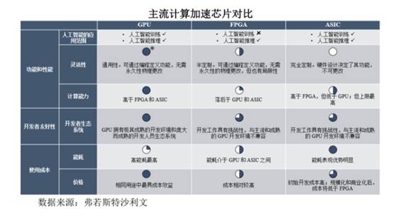 不过,三家公司的产品和技术路线有一些区别。主流计算加速芯片基本上可以分为三类,即GPU、ASIC和FPGA。其中用于AI大模型训练的以GPU(英伟达、AMD、摩尔线程等公司)和ASIC(谷歌、华为海思、寒武纪)两类芯片为主。
