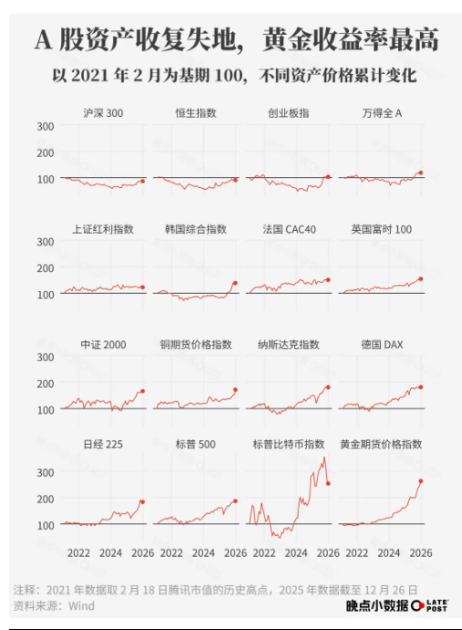 2021 年初,正值海外疫情扩散,全球订单和资金涌入,将一批公司的市值以及中国人的消费和买房热情推到历史顶峰。五年后回看,这是新一轮长期变化的起点,这一年发生的许多事还在持续影响着我们的世界。