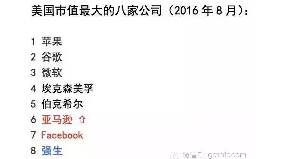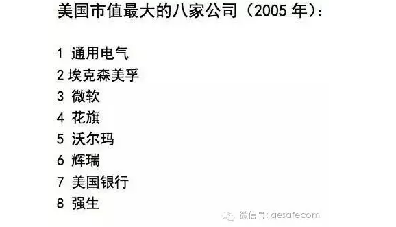 金融股经历了金融危机,似乎伤重难愈,翻不了身。花旗与美国银行退出排行榜。医药消费的杰出代表:强生与辉瑞,排名仍然在前二十名,我们人类永久依赖医药。通用电气是工业股的代表,经历了杰克韦尔奇的黄金时代。通用电气已经剥离了金融,方方面面出现了放缓,公司将再次聚焦主业并转型发展。沃尔玛的衰落,则是因为一个公司崛起:亚马逊。