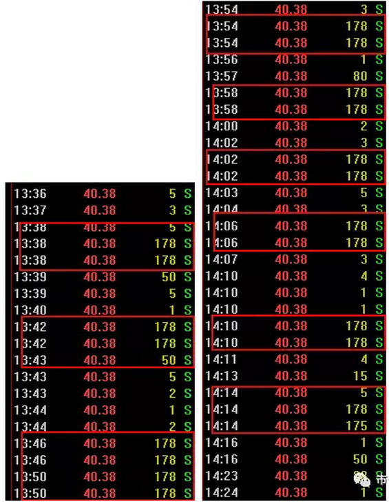 当日在午盘后“178”(谐音“一起发”)、“175”(谐音“一起捂”)看似是机构间的相互打暗语(笔者想说的是,都什么年代了,要联合操盘还需要打盘语?这不是摆明的留下证据吗?),当然,事实证明,这是操盘机构为了吸引投资者进场接盘而故意打出来的交易笔数。
