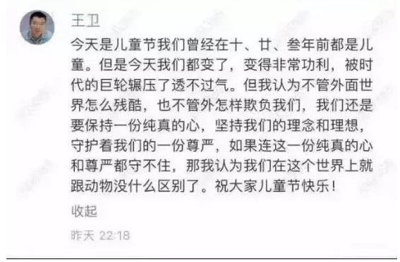 王卫借儿童节发声,表明“不管外面世界怎么残酷,也不管外面怎么欺负我们……守护着我们的一份尊严”,这是不是代表着顺丰将不会轻易妥协?