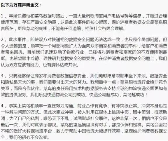 昨日,菜鸟和顺丰因“数据”爆发大战,(详情请参见:快递大决战时刻:菜鸟顺丰互怼背后,数据所有权到底归谁?看最全评论),不少小伙伴认为,两方的战火应该不会烧得太大,但按事态的发展趋势,大火似乎也并没有那么容易平息。