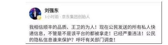 而京东集团创始人刘强东更是在社交网站上表明了自己的立场,相信王卫为人,支持顺丰。
