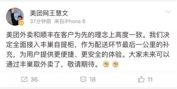 1、京东美团宣布全面接入顺丰旗下丰巢自提柜:因价值观一致