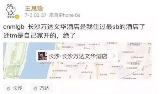去年7月3日凌晨,因为入住信息被泄露,王思聪在微博上痛骂长沙万达文华酒店。