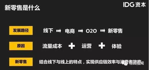 IDG资本执行总监孙宇含认为:电商的竞争重新转回到线下。从流量上看线上渗透率、到达率基本饱和,线下获客是趋势;而在品类上,生鲜品类高频,但客单价低,所以完全的线上方式很难实现规模与效率,所以结合线下资源是非常重要的方式;体验需求上,消费者从服务、设计到环境一些完整的因素结合在一起。新的追求为:零售效率,供应链效率+消费者效率...以下为其分享:
