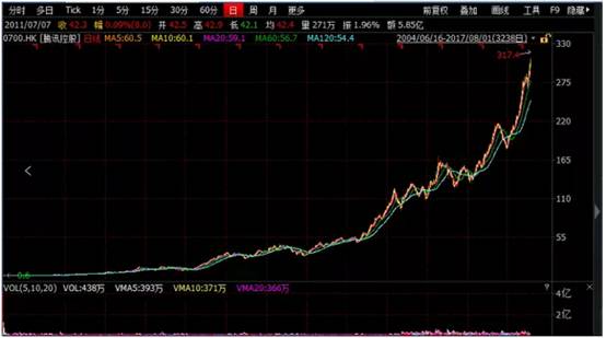 腾讯自香港上市至今,是一只持续不断的,一直给投资者赚钱的股票,可谓是牛股中的战斗机。