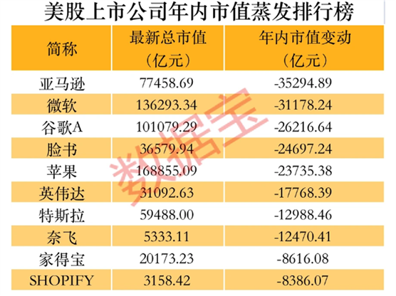 8大科技巨头平均跌1个茅台!美股市值蒸发47万亿 加息缩表加剧市场波动