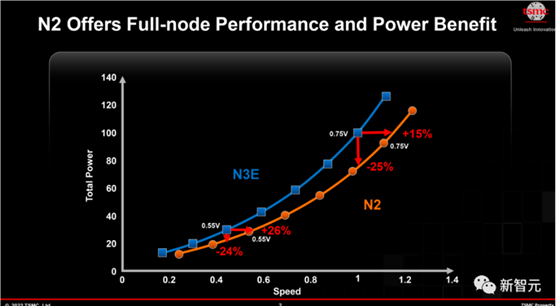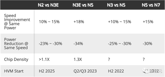 工序上做出如此改进后,在同等能耗和复杂度下,N2的性能比N3高10%-15%。在相同速度和单位面积晶体管平均数目下,N2的能耗比N3低25%-30%。