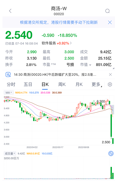 商汤科技再次大跌18%,市值跌穿D轮!D轮、D+轮、基石 投资者或亏损