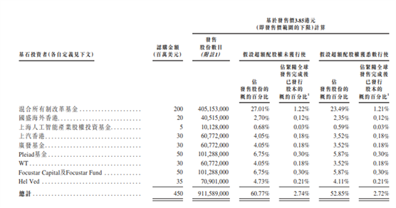 根据招股书,公司上市前累计获得12轮融资,投资者持股223.62亿股,基石投资者持股10.33亿股。