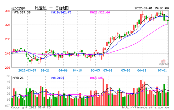 比亚迪(002594.SZ)的市值也一路走高,2022年6月10日突破万亿元,成为全球市值仅次于特斯拉(NASDAQ:TSLA)和丰田汽车(NYSE:TM)的车企。之后回调,截至6月27日收盘,比亚迪市值9321亿元。