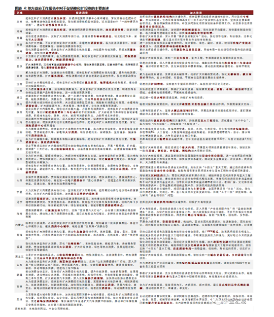 此外,各地政府工作报告中对于促消费、扩投资的表述积极。
